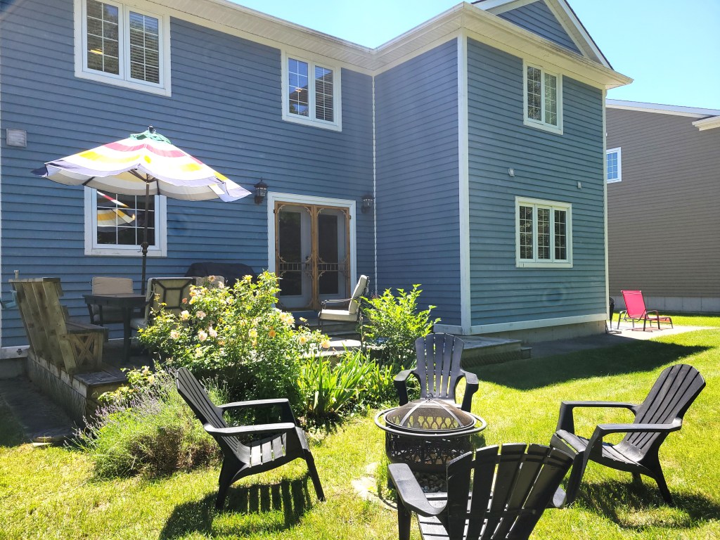 Experience comfort and style in this modern home in our beautiful lakeside community. Pretty lot with no neighbors behind, on quiet street. Lovely front porch leads into spacious foyer and living room with cathedral ceilings. Chef’s kitchen with center island and large dining area with walk-out to back deck. Plenty of room for the kids to play. Main floor bedroom with single Day Bed, three-piece bathroom with shower and laundry. Side door leads to concrete patio. Upper level has three bedrooms, and a full bathroom.
